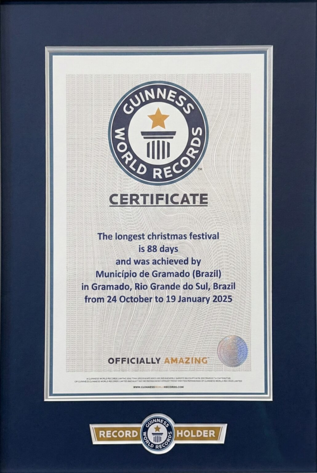Certificado Oficial Guinness Word Records